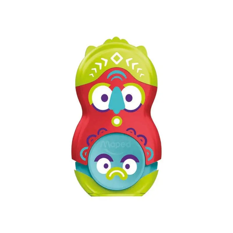 Apontador e borracha 2 em 1, divertidas cores vivas.