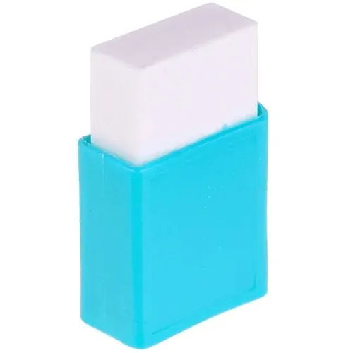 – Apaga escrita a lápis e lapiseira. – Borracha macia. – Com capa protetora.