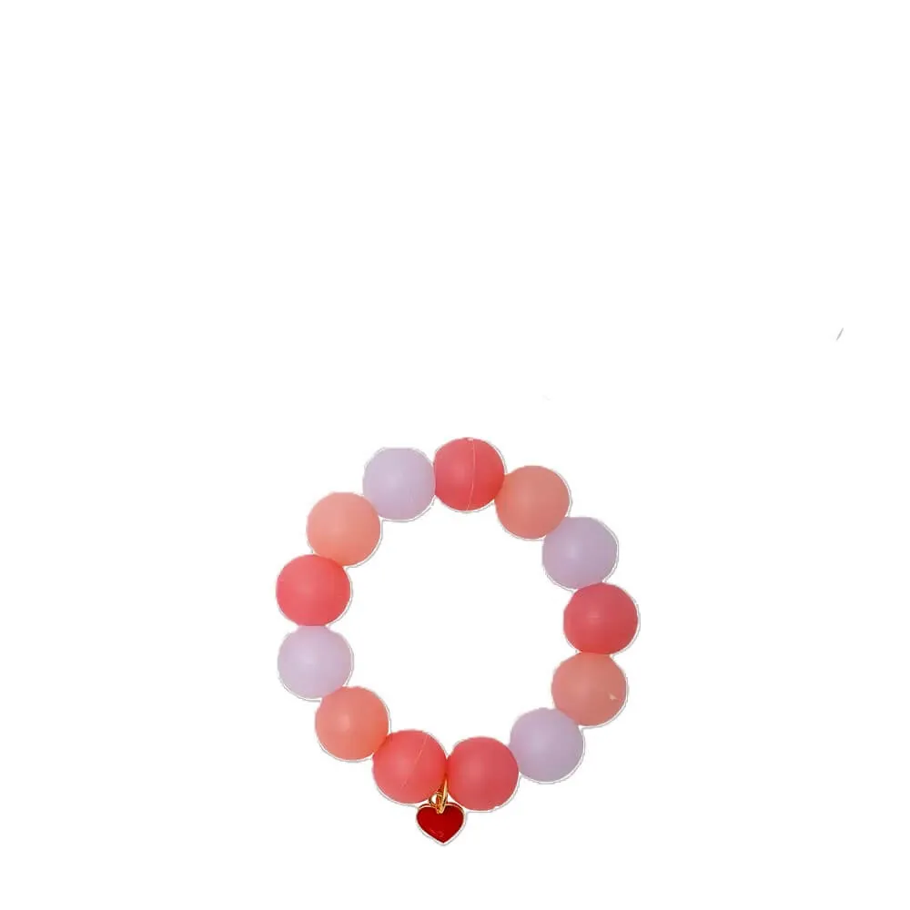 (detalhes que lembram miçangas, elásticos coloridos ou relevos que sugerem uma pulseira)