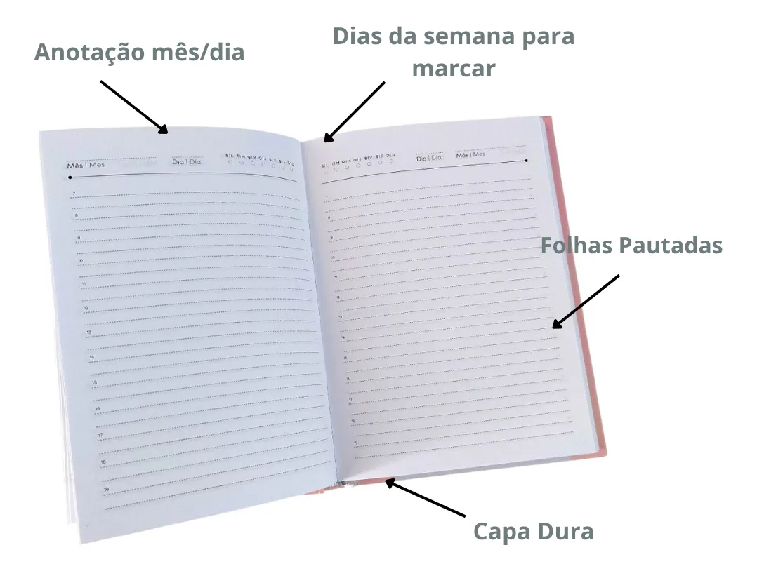 Detalhes: Capa dura / Índice / Folhas pautadas / Formato: 100mm x 150mm / Gramatura: 56g/m² / 80 Folhas.