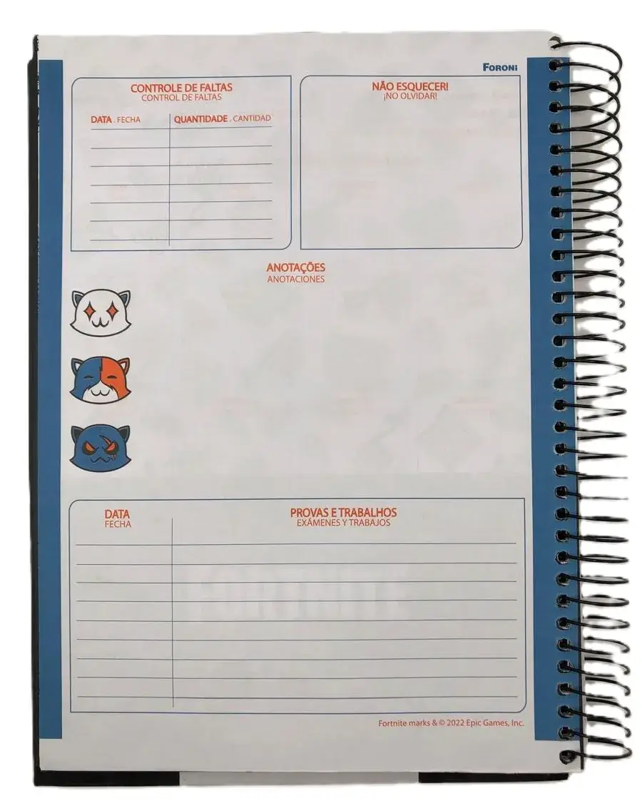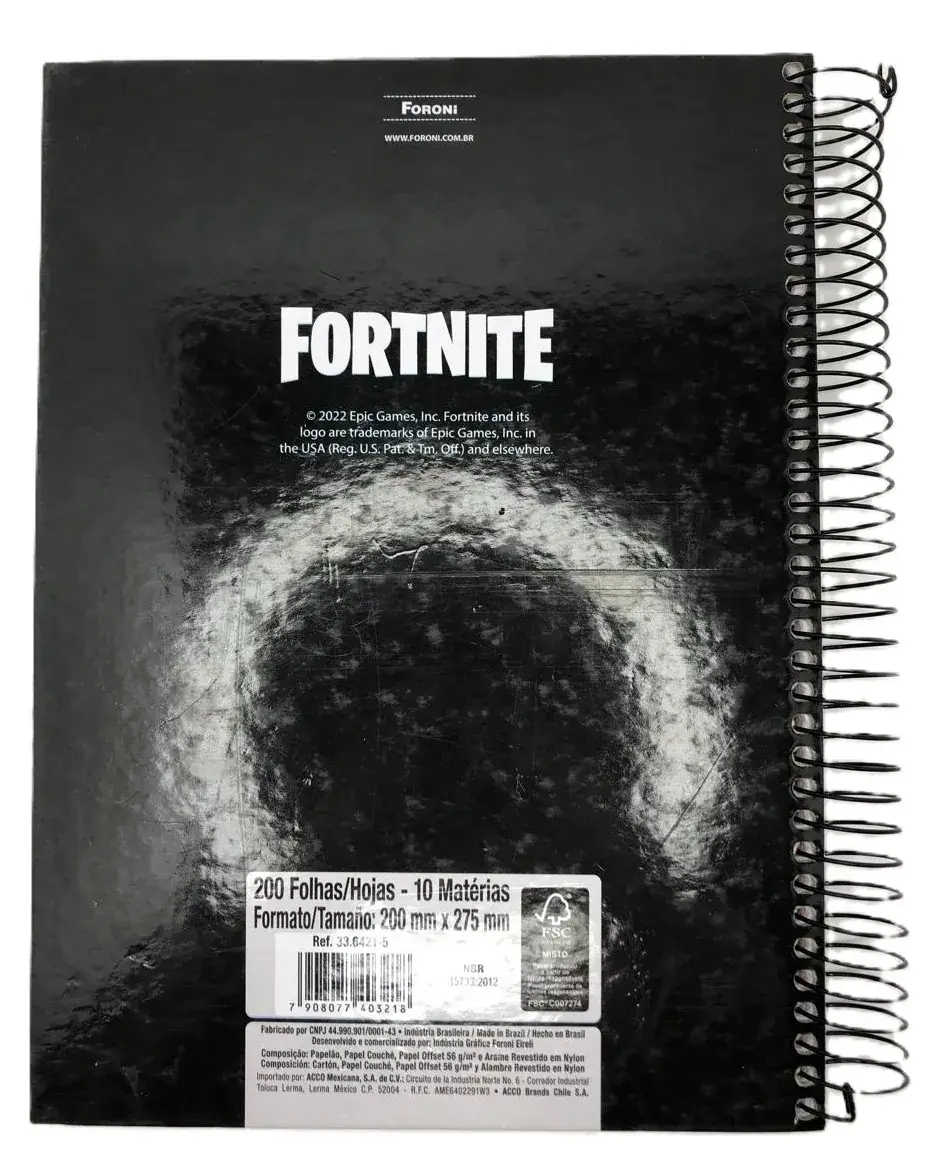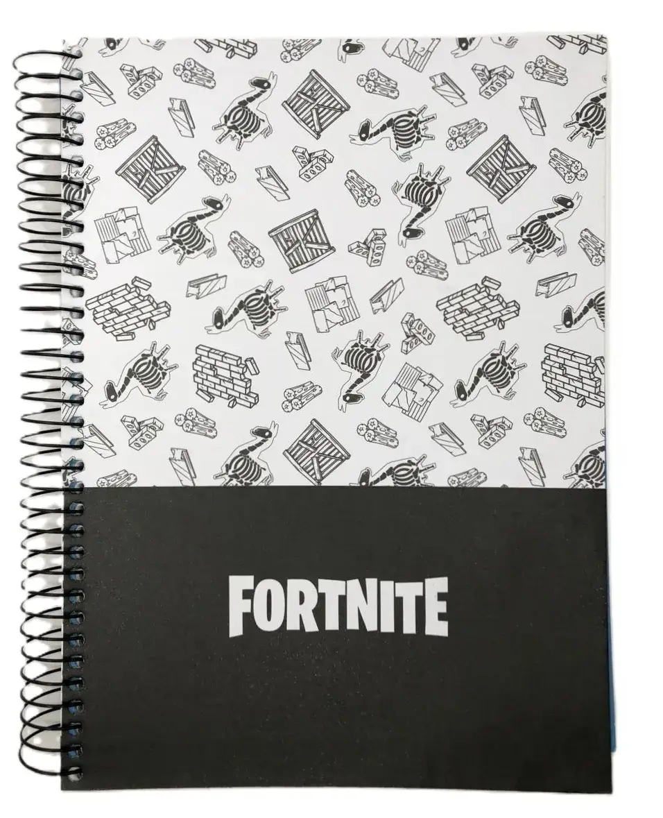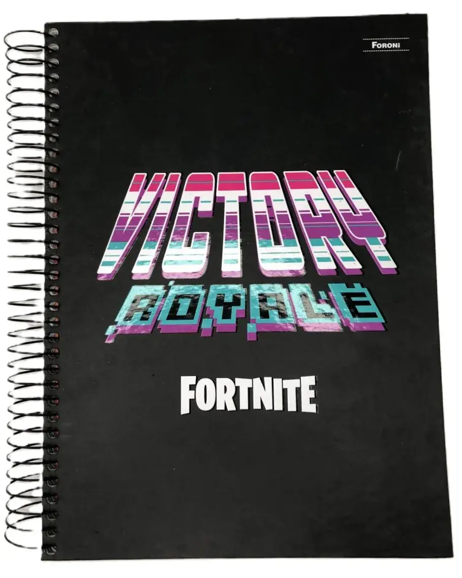 O Caderno Universitário Capa Dura Fortnite busca retratar o game através de suas 8 opções de capas – um jogo de combate entre 100 jogadores que combina criação, diversão e muito humor