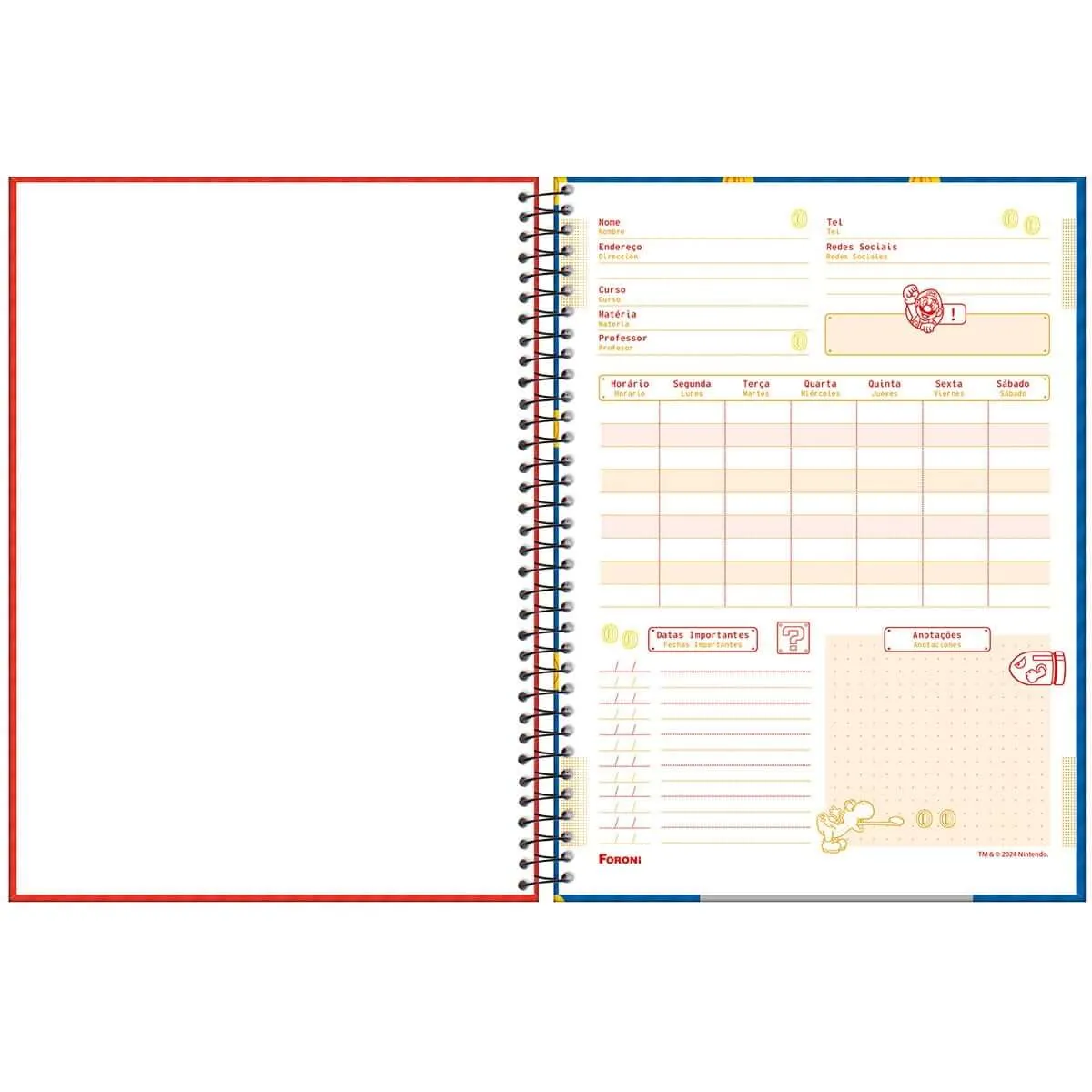 Caderno Espiral Super Mario 10 Mat 160 Folhas Formato:200mm X 275mm
