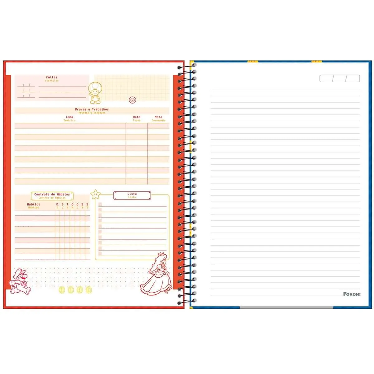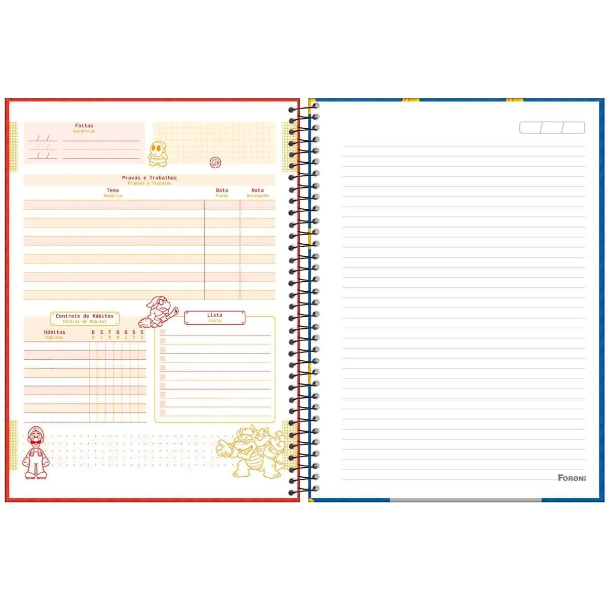 Caderno Espiral Super Mario 10 Mat 160 Folhas Formato:200mm X 275mm