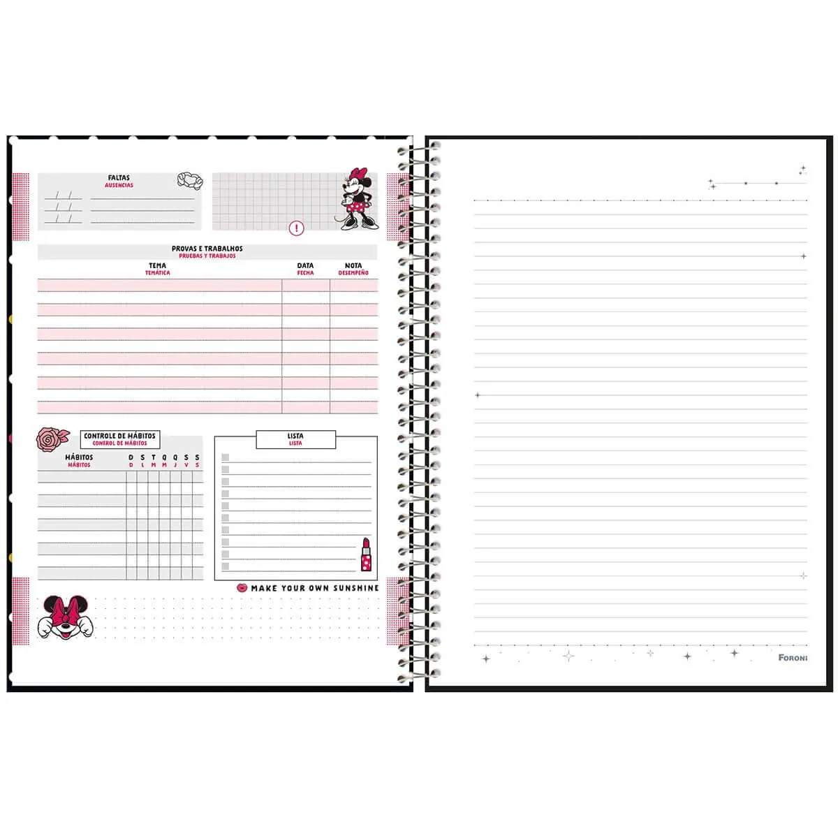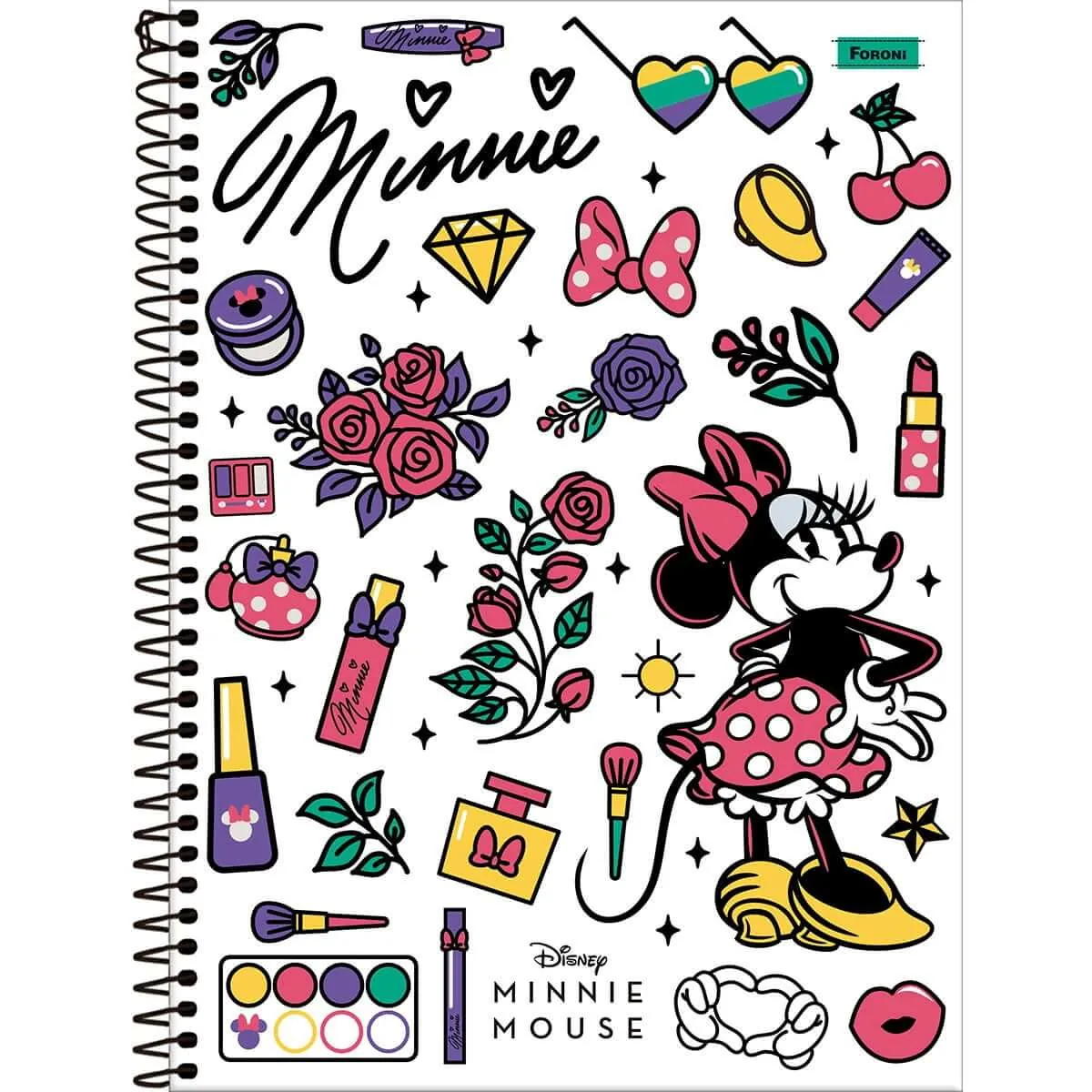 Caderno Espiral Minnie Mouse Vintage Branco 10 Mat. 160 Fls. – Foroni