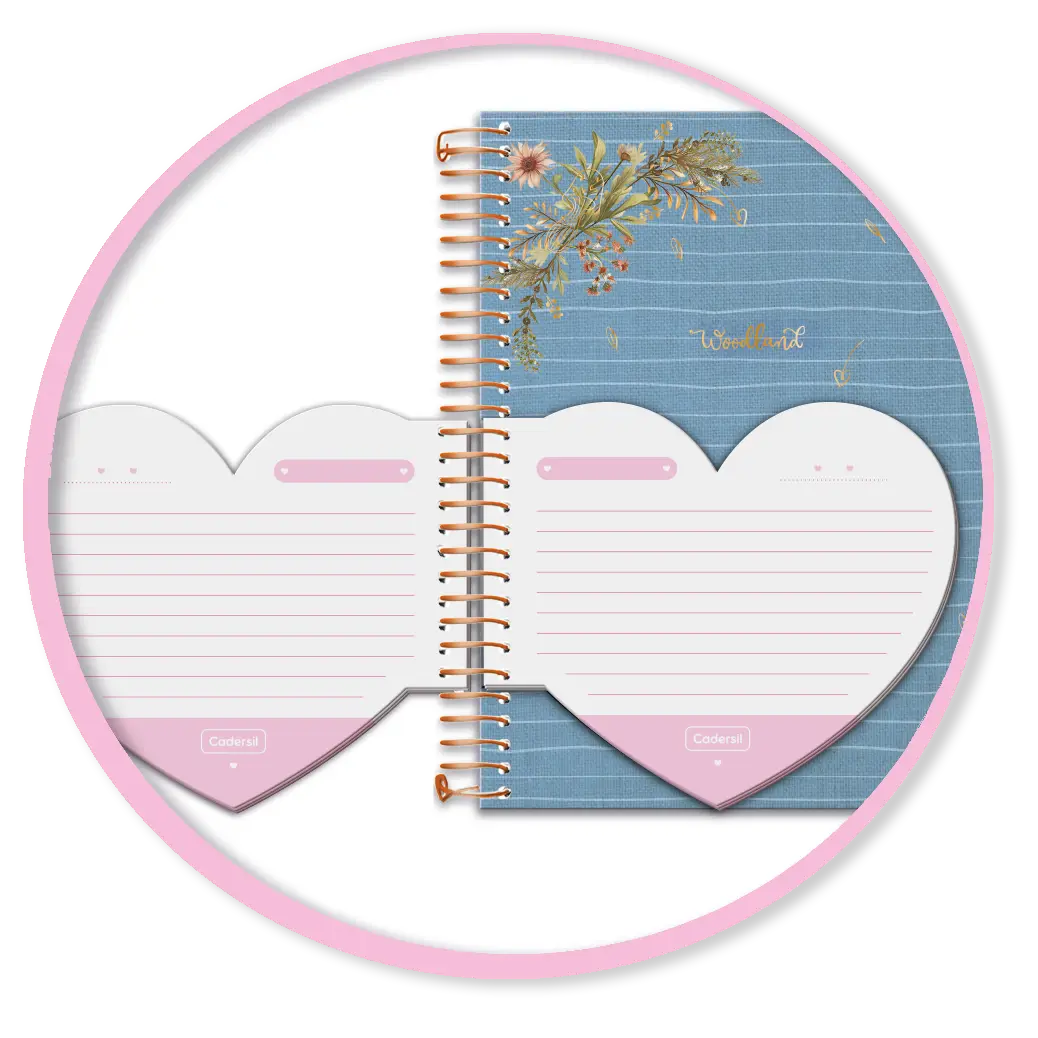 Informações Técnicas:Caderno Colegial Espiralado Criativo com Bloco Coração – 80 folhas