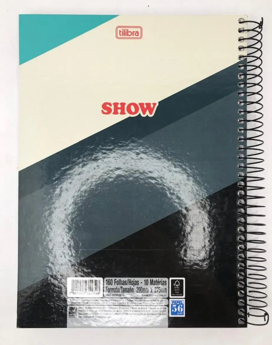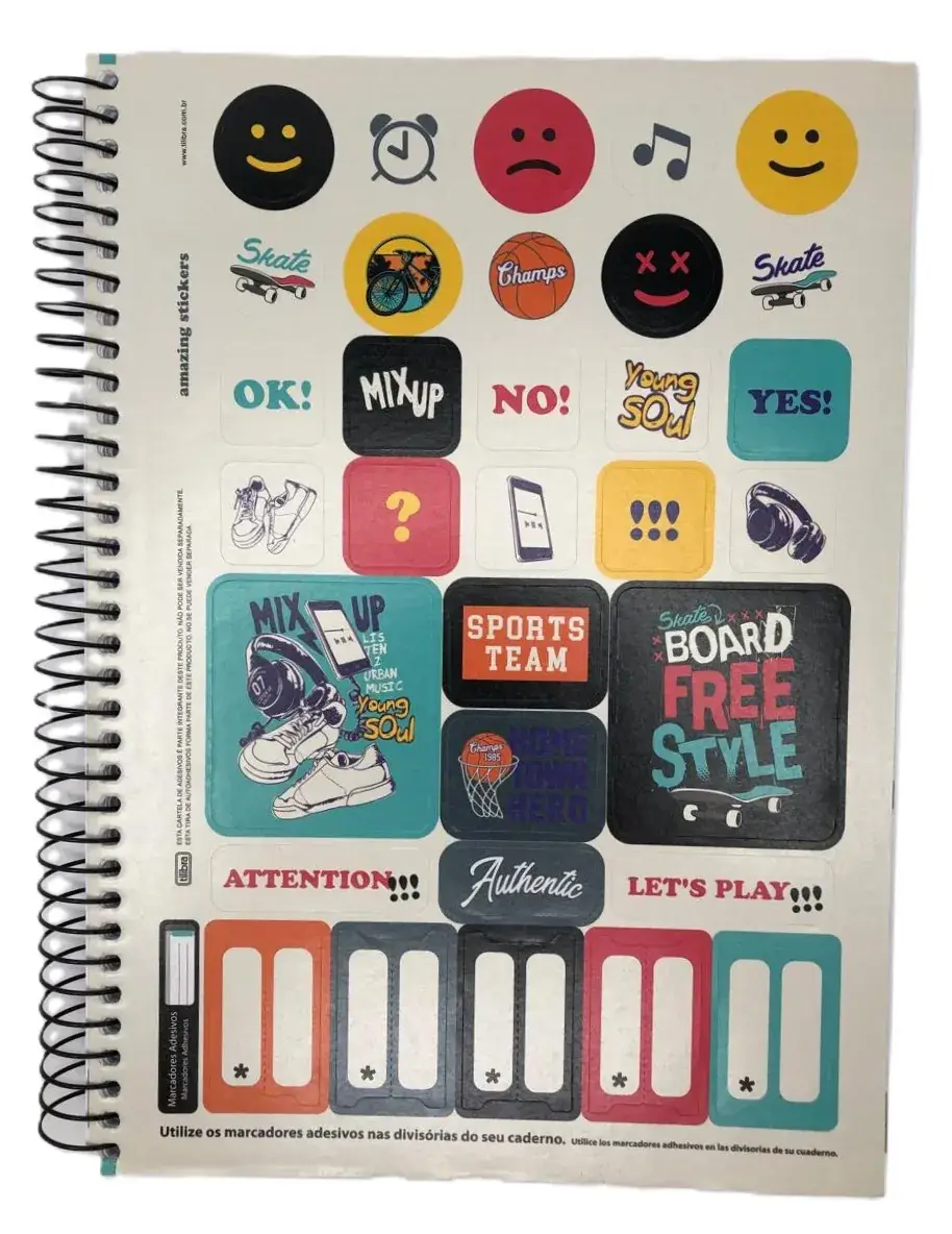 Caderno Espiral Capa Dura Universitário 10 Matérias Show Masculino 160 Folhas possui capa dura, bolsa plástica para guardar trabalhos e anotações, folha com adesivos funcionais, folhas pautadas e espiral.