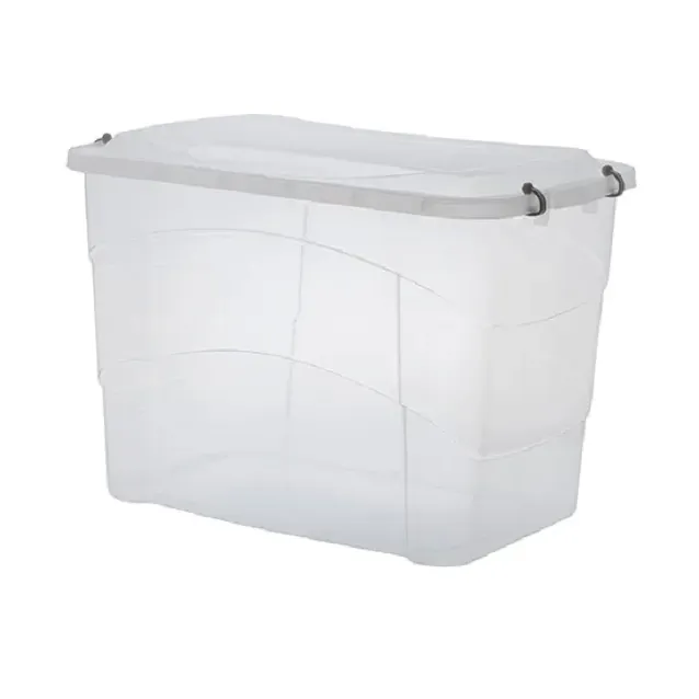 – Cor Cristal. – Armazenamento de 90 L. – Tamanho: 66 x 44 x 45 cm.
