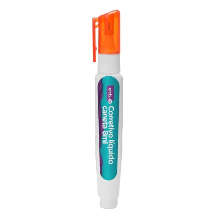 -Corretivo líquido em formato de caneta. – Para corrigir escritas e traços de esferográficas, fotocópias, entre outros. – A base de água. – Não tóxico. – 8 ml.