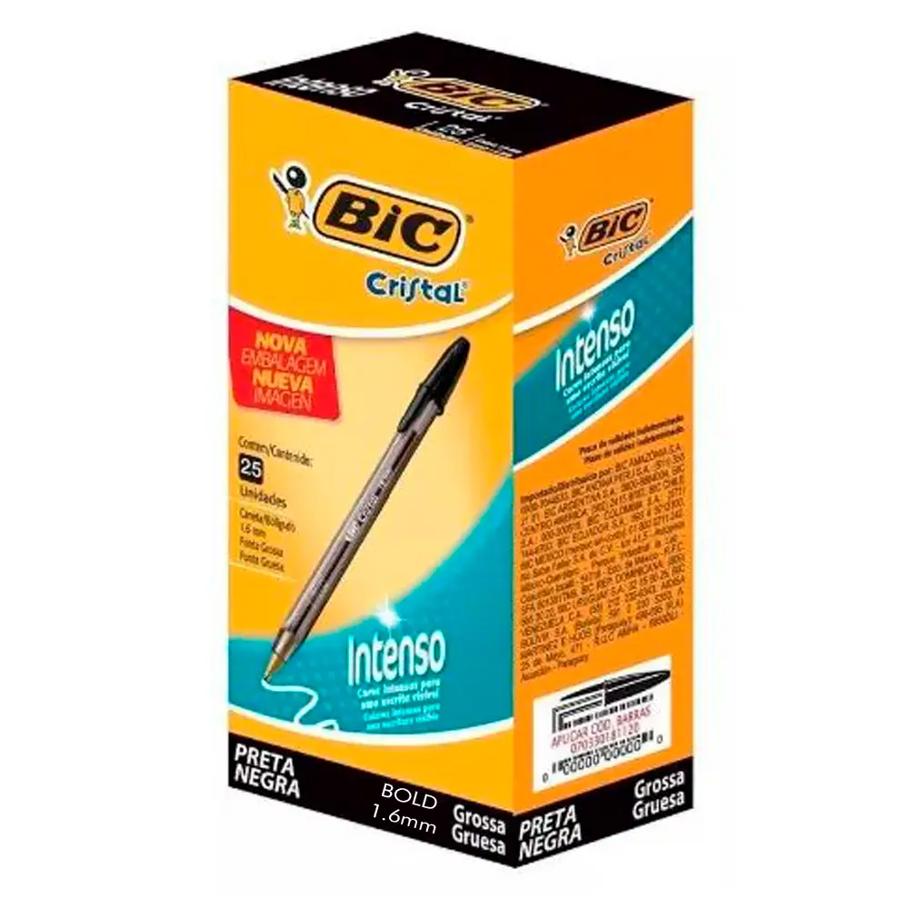 Caneta esferográfica 1.6 cristal Bic– Escrita super macia e sem falhas– Ponta 1.6– Design moderno