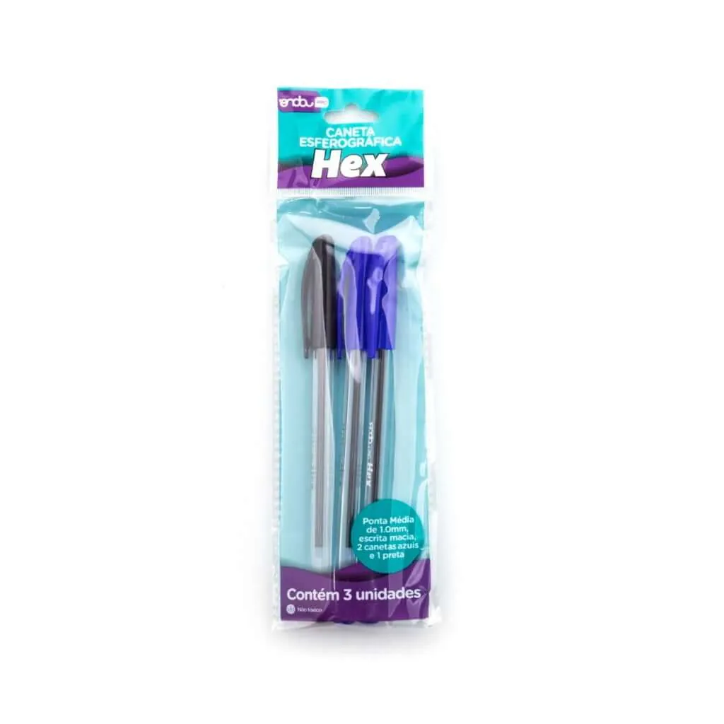 Caneta Esferográfica Hex Azul/ Preta 1.0 C/ 3 UN. – Onda