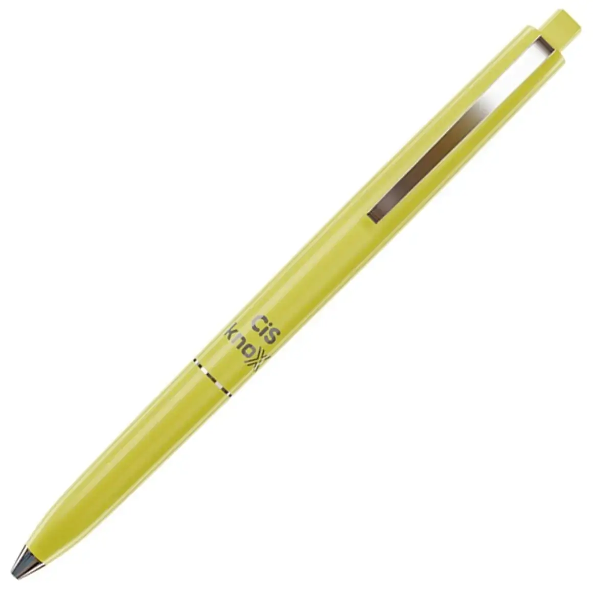 Caneta Cis Knox Retratil 0.7 mm AmarelaRetrátil. – Ponta 0.7mm. – Tinta Azul. – Design Minimalista.