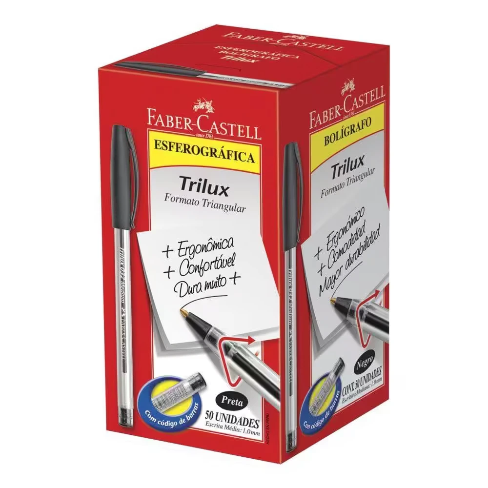 Caneta Esferográfica Trilux Formato triangular ergonômico: garantia de conforto e melhor escrita. Ponta Fina: Maior precisão no traço. Caixa C/50