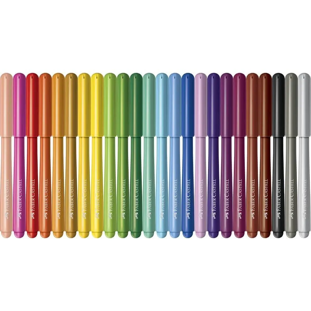 Caneta hidrográfica Faber Castell possui sistema exclusivo que protege a ponta contra impactos, garantindo maior durabilidade. Estimule a criatividade com cores vivas e tinta lavável.