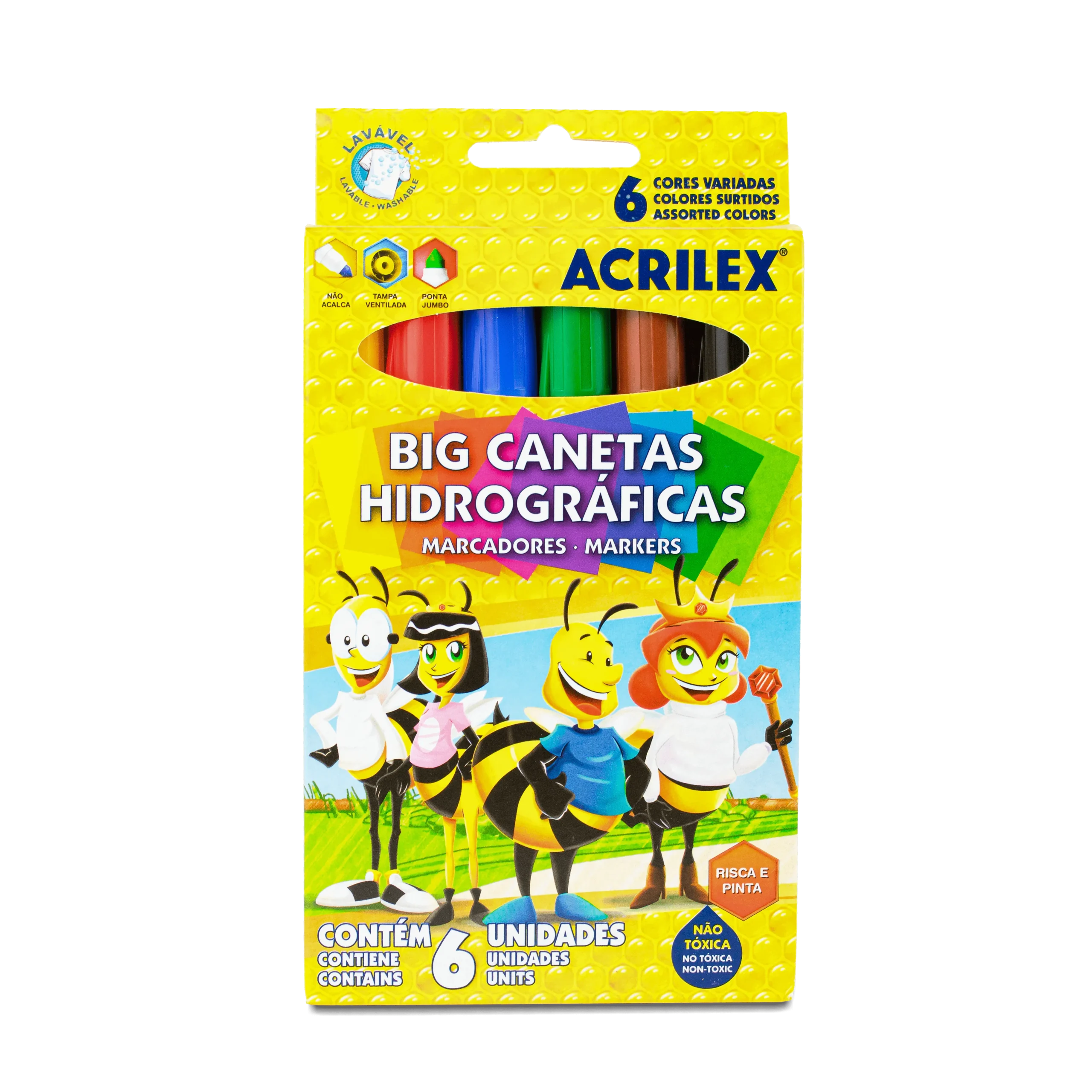 Caneta Hidrográfica Big/ Jumbo de ponta grossa e resistente. Para desenhar, pintar e fazer tracejados sobre papel, papel cartão e cartolina. As canetas Hidrográfica 6 Cores dão muito mais cor aos seus desenhos! Lavável e não tóxica.