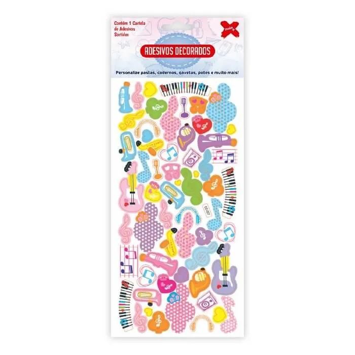 Explore o mundo da criatividade com os Adesivos Decorados, esta cartela de adesivos traz uma seleção vibrante e variada, ideal para personalizar e dar um toque especial a qualquer ambiente ou objeto.