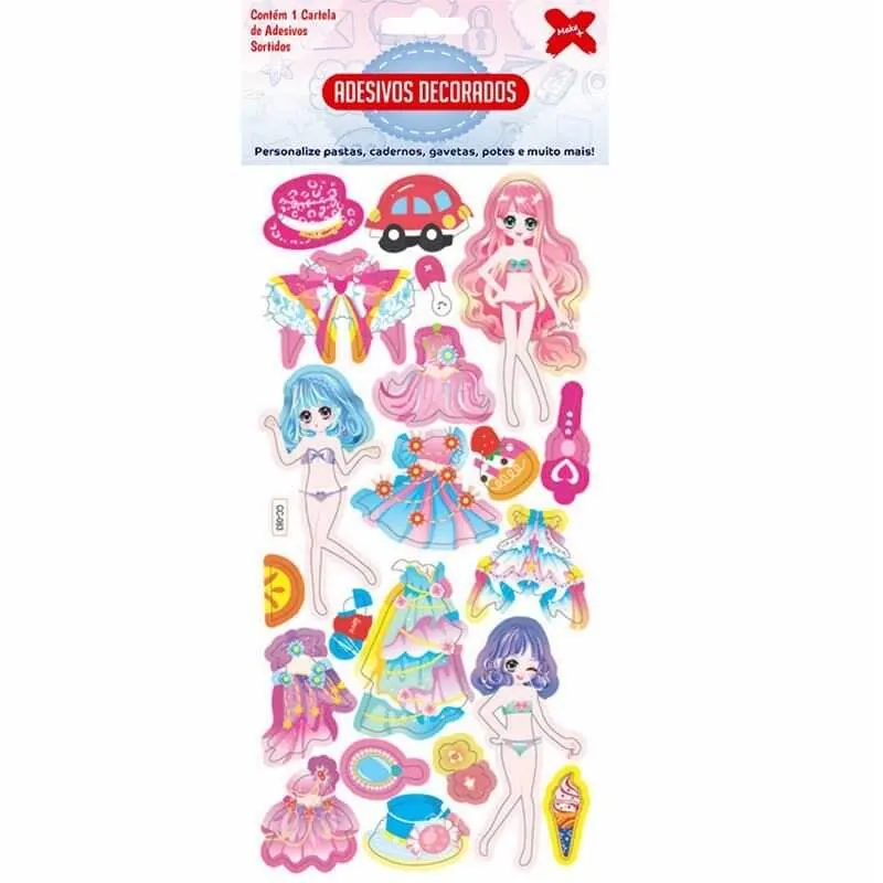 Explore o mundo da criatividade com os Adesivos Decorados, esta cartela de adesivos traz uma seleção vibrante e variada, ideal para personalizar e dar um toque especial a qualquer ambiente ou objeto.