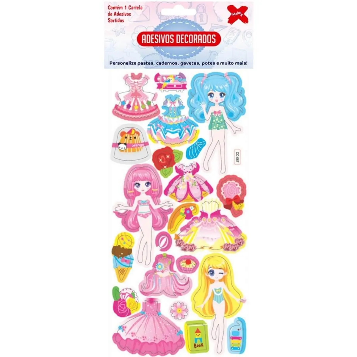 Explore o mundo da criatividade com os Adesivos Decorados, esta cartela de adesivos traz uma seleção vibrante e variada, ideal para personalizar e dar um toque especial a qualquer ambiente ou objeto.