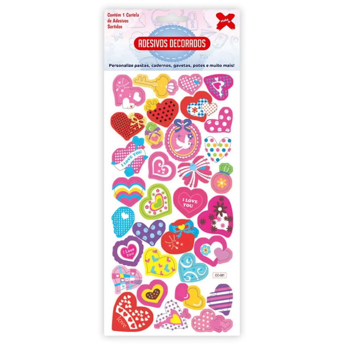Explore o mundo da criatividade com os Adesivos Decorados, esta cartela de adesivos traz uma seleção vibrante e variada, ideal para personalizar e dar um toque especial a qualquer ambiente ou objeto.