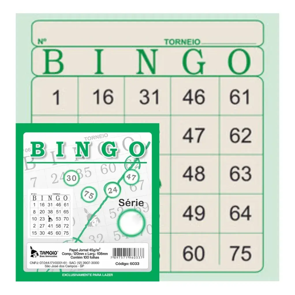 Cartela de Bingo Tamoio Verde 100FLS 6033 – A Cartela de Bingo Tamoio Verde é a escolha perfeita para quem busca diversão e entretenimento em eventos sociais. Com um design atraente e fácil de usar, essa cartela de bingo é ideal para jogos em festas, clubes e eventos comunitários. Feita de material resistente, ela garante durabilidade e reutilização, proporcionando horas de diversão para todos os participantes. Com uma variedade de números e espaços para marcar, essa cartela de bingo é uma adição essencial para qualquer organizador de eventos.