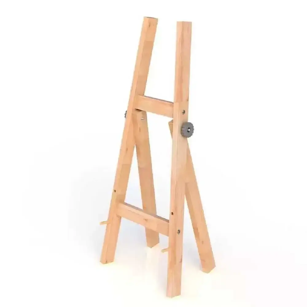 Cavalete fabricado em madeira pinus de reflorestamento. Pode ser sua entrada nas artes plásticas. Prático e desmontável, é ideal para estúdio e campo, sendo perfeito para pinturas em aquarela, guache ou acrílica. Muito versátil, comporta variados tamanhos de tela, pois possui regulagem de altura para acomodá-las. A estrutura em pinus tem madeiras nas medidas de 40 x 18 mm, com pernas articulados com para desmontagem fácil e rápida.