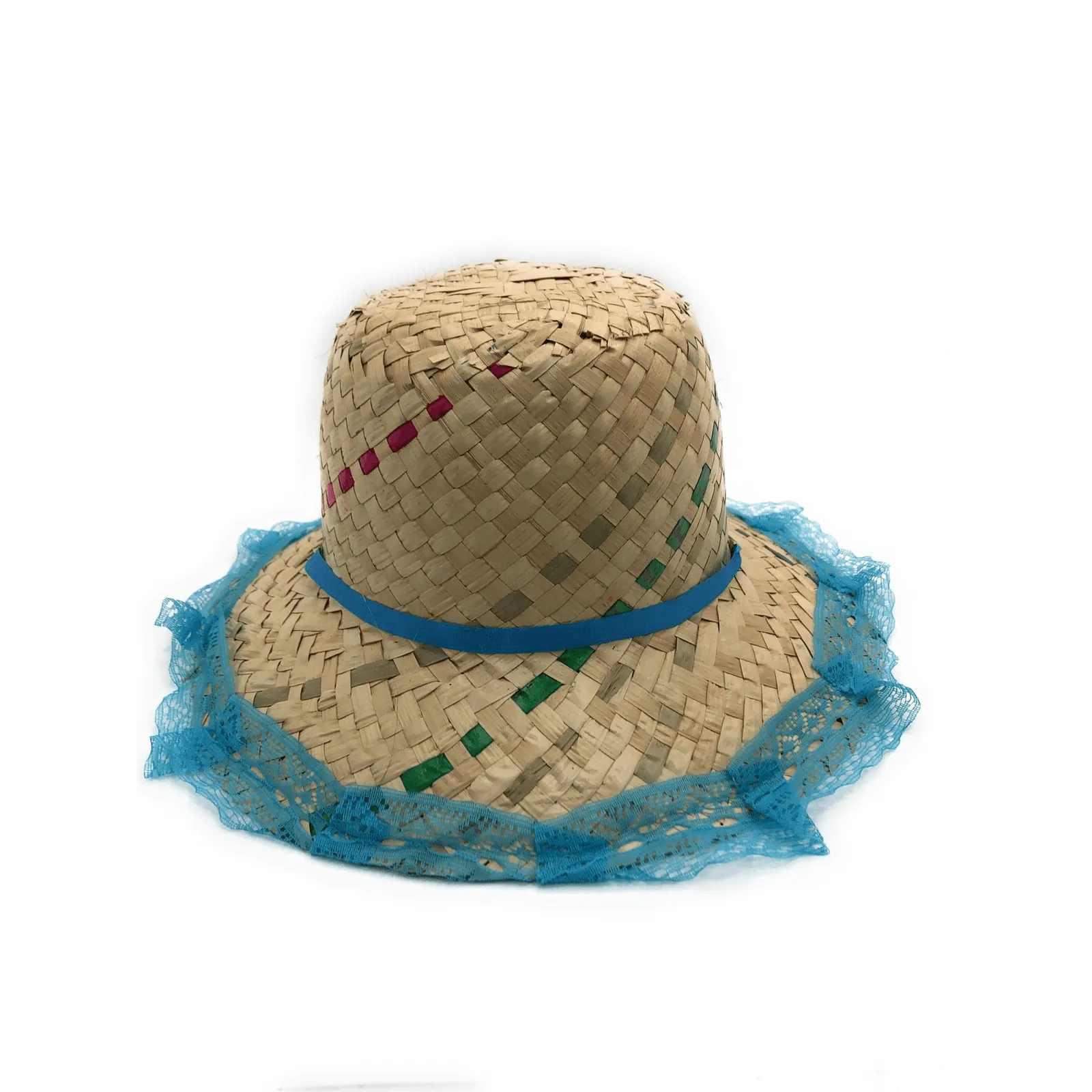 Chapéu De Palha S/ Trança C/ Renda E Fita Azul Claro – Kopal