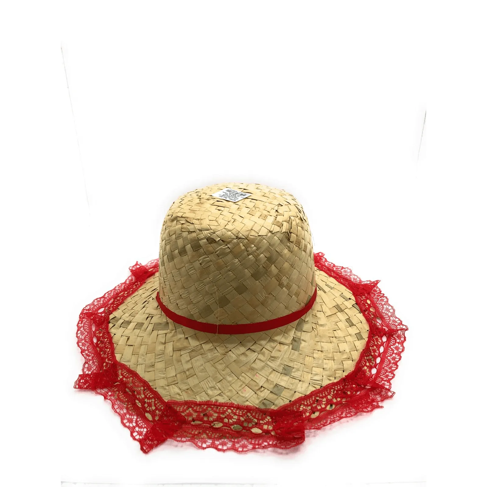 Chapéu De Palha S/ Trança C/ Renda E Fita Vermelha – Kopal