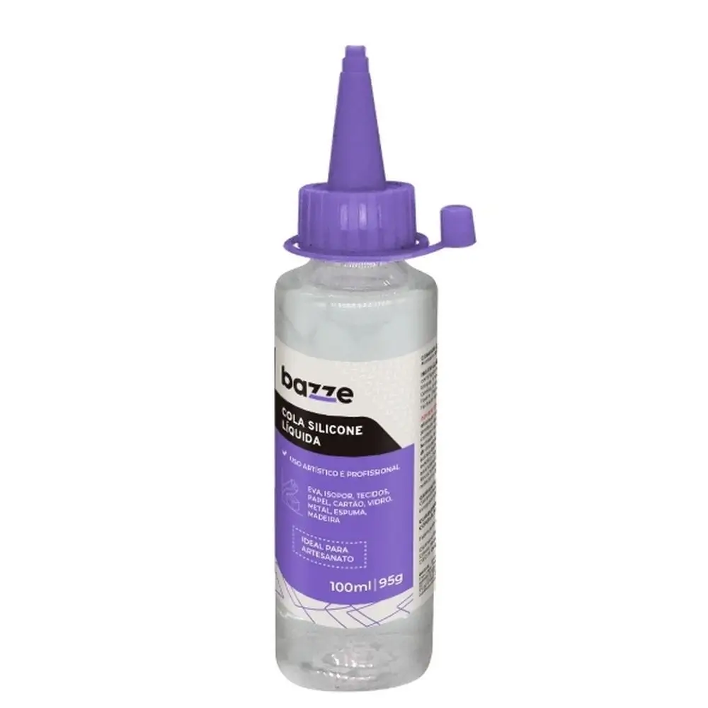 A cola de silicone Líquida Bazze é ideal para artesanato. Para EVA, isopor, tecidos, papel ,cartão, vidro, metal, espuma e madeira.