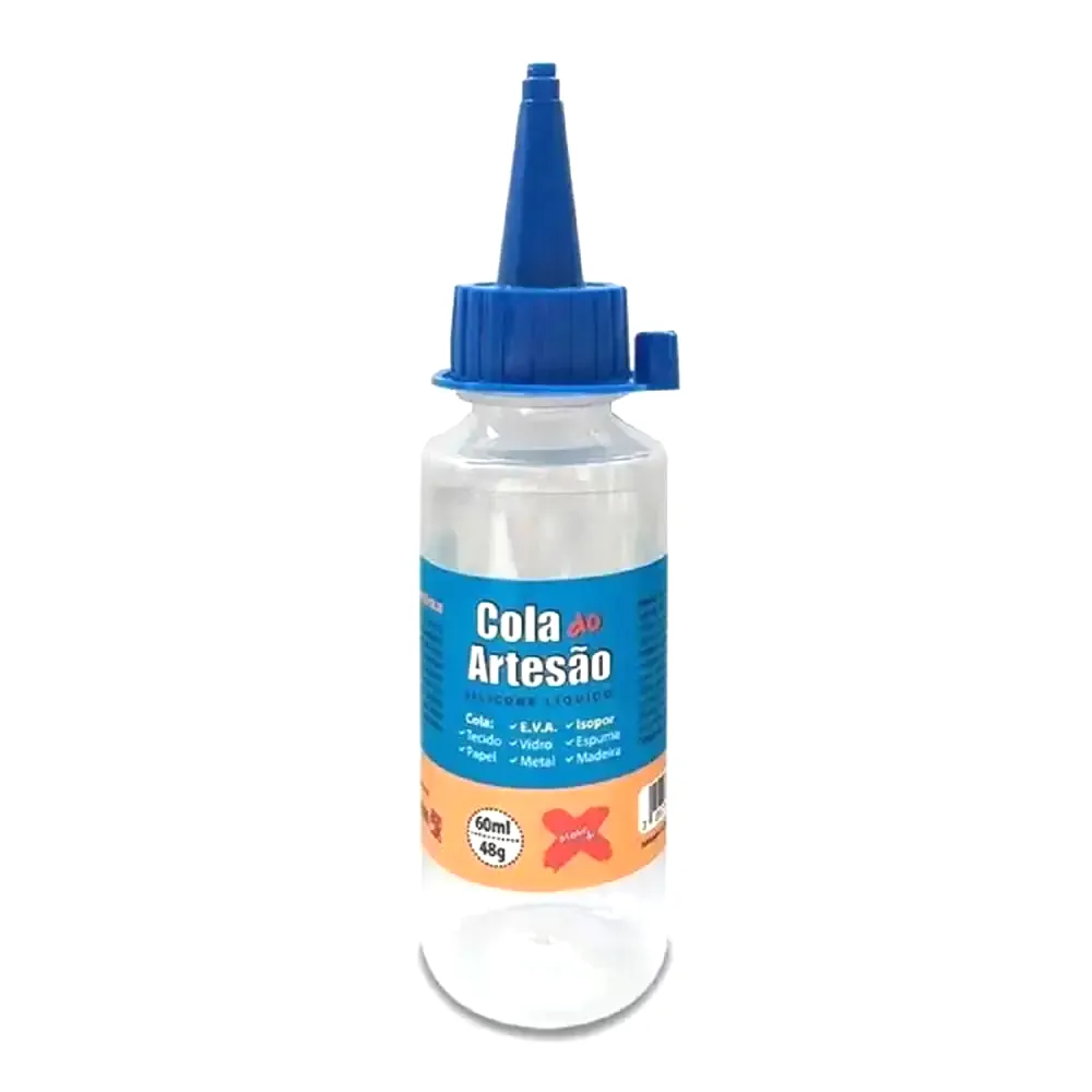 Cola do Artesão Silicone Make+ 60ml Indicada para trabalhos artísticos, reparos domésticos e artesanato. Adere a diversas superfícies e materiais como madeira, metais, papel, papelão, EVA, isopor entre outros.