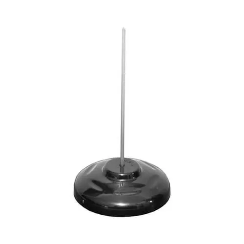 – Dimensões: 80 x 80 x 140 mm. – Base: Plástico reciclável. – Espeto: Aço.