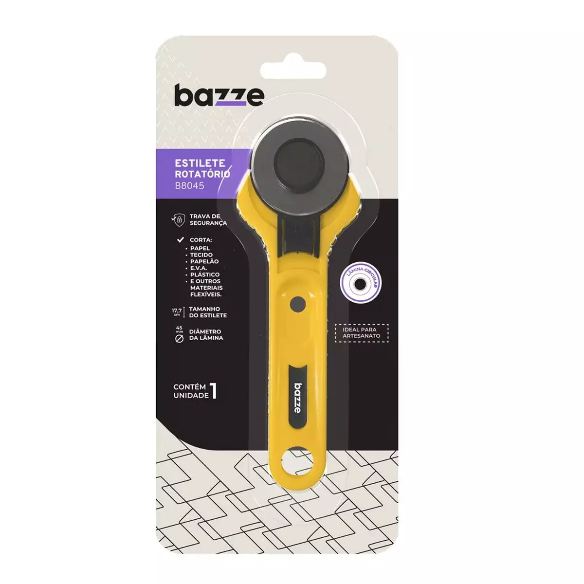 Estilete Rotatório B8045. Características: – Corta: Papel, Tecido, Papelão, EVA, Plástico e Outros Materiais Flexíveis. Composição: – Aço Carbono e Polímero Poliestireno.