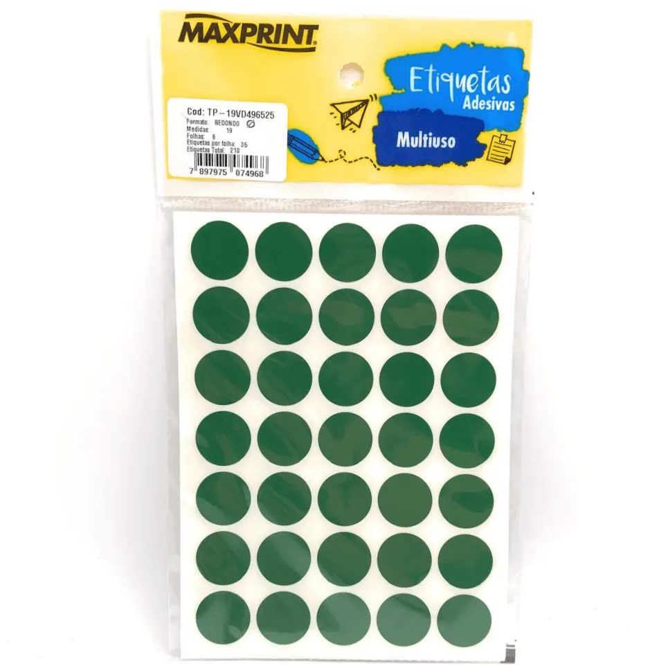 Etiqueta Multiuso Verde Tp-19 19 mm C/ 210 UN. – Maxprint