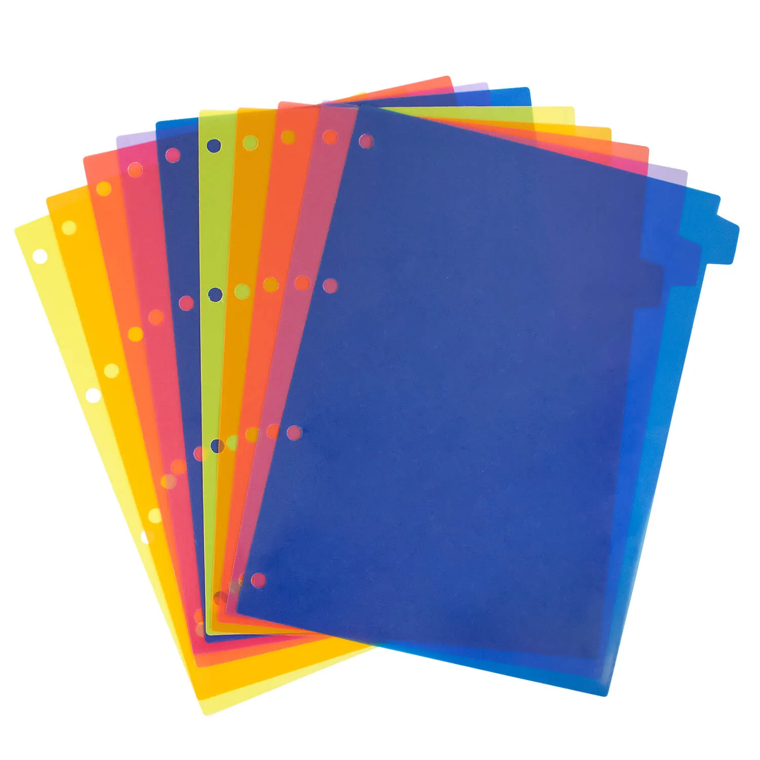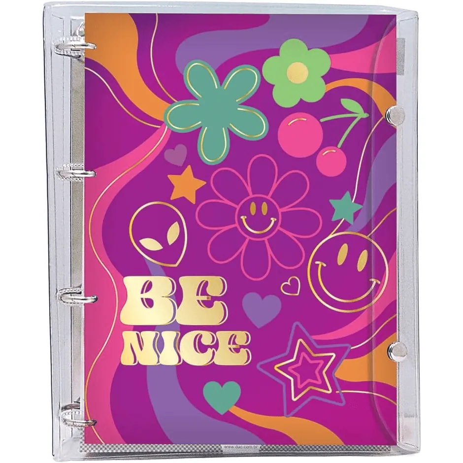Fichário: Formato: – 22,3 cm x 27,5 cm x 4 cm Quantidade: Unitário Composição: PVC Cristal Detalhes: Com 4 Argolas fixas, 192 folhas , 10 Divisórias e fechamento em botão