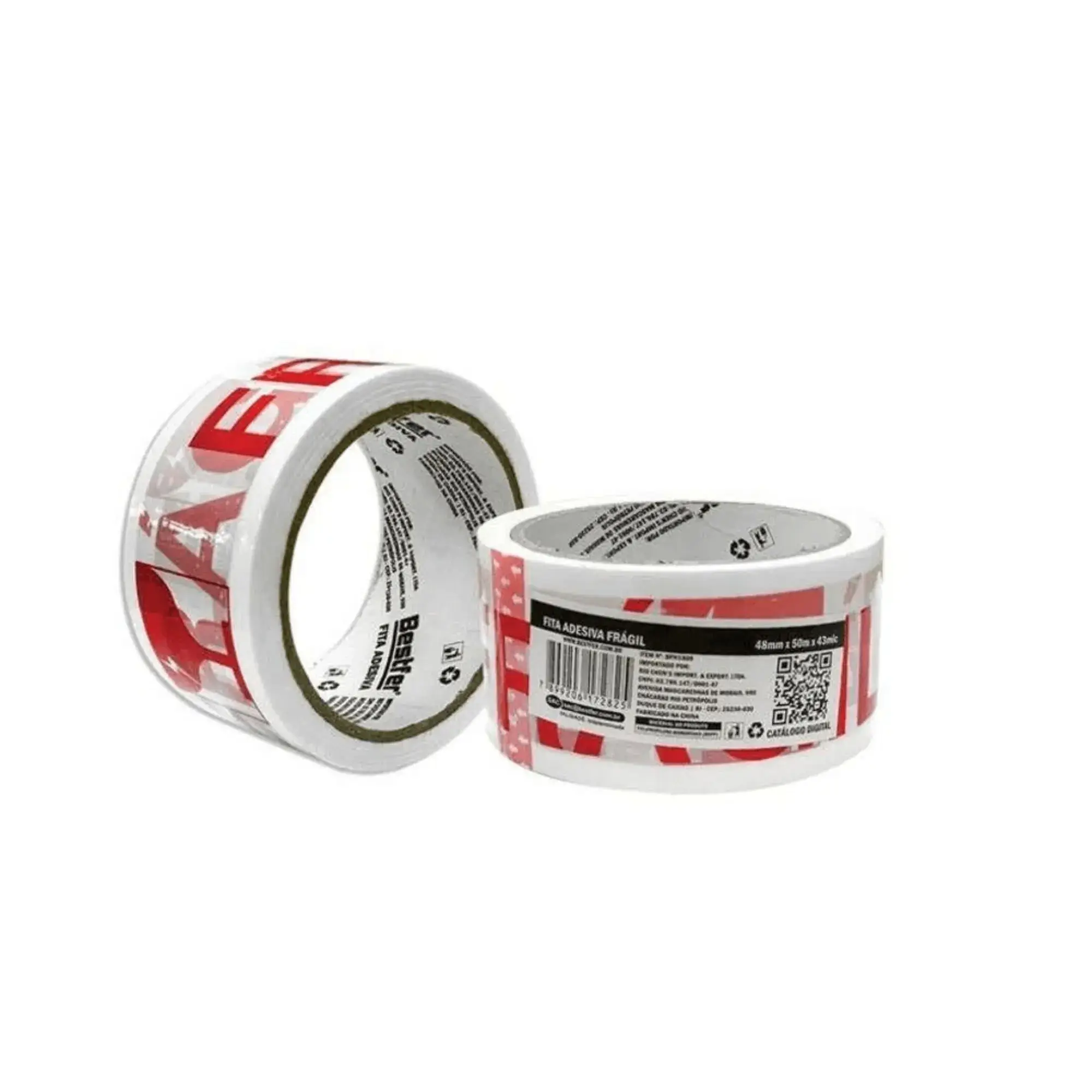 – Cor: Branca com escrita em vermelho.– Tamanho: 48 mm x 50 m.