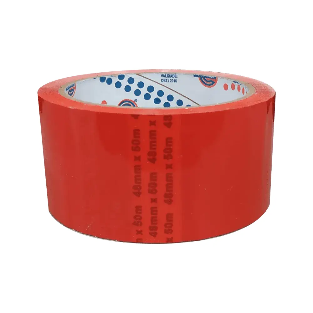 – Cor: Vermelho. – Tipo: Durex. – Tamanho: 48 mm x 50 m.
