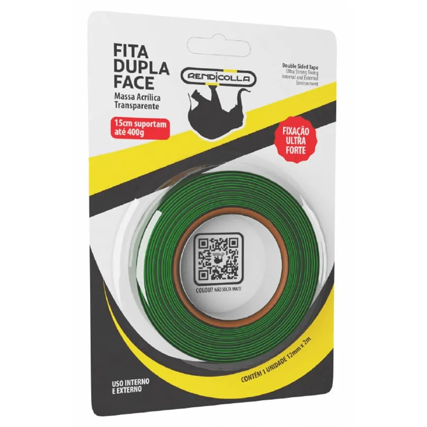 Fita Dupla Face Fixação Forte Rendicolla, foi desenvolvida para promover uma forte fixação, rápida e segura. Você poderá fixar vários objetos como: canaletas, quadros, fixar madeira em algumas superfícies, vidro, metal, acrílico. Fazer teste de aderência na peça para ver se terá boa fixação.