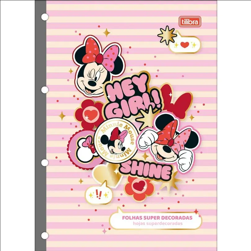 Folhas P/ Caderno Argolado ( Fichário ) Minnie Rosa C/ Adesivos 80 Fls. – Tilibra quantidade