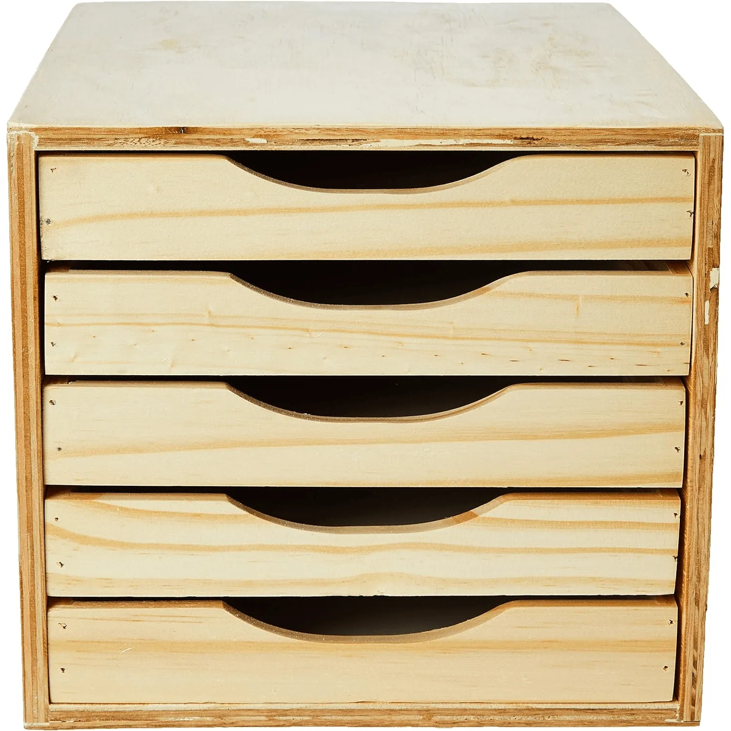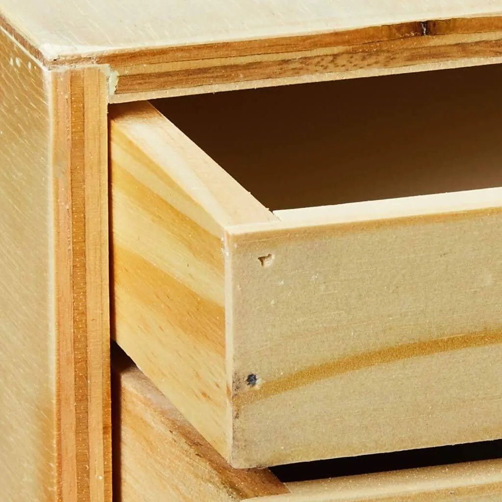 – Puxadores Ergonômicos. – Com 5 gavetas. – Mandeira Pinus. – Tamanho: 37 x 27,5 x 25 cm.