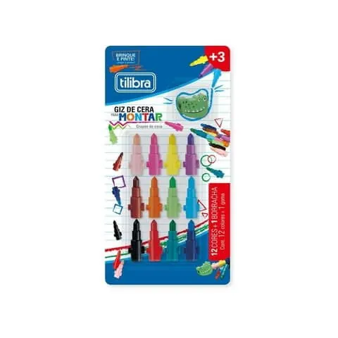 GIZ DE CERA PARA MONTAR C/ 12 CORES E 1 BORRACHA – TILIBRA