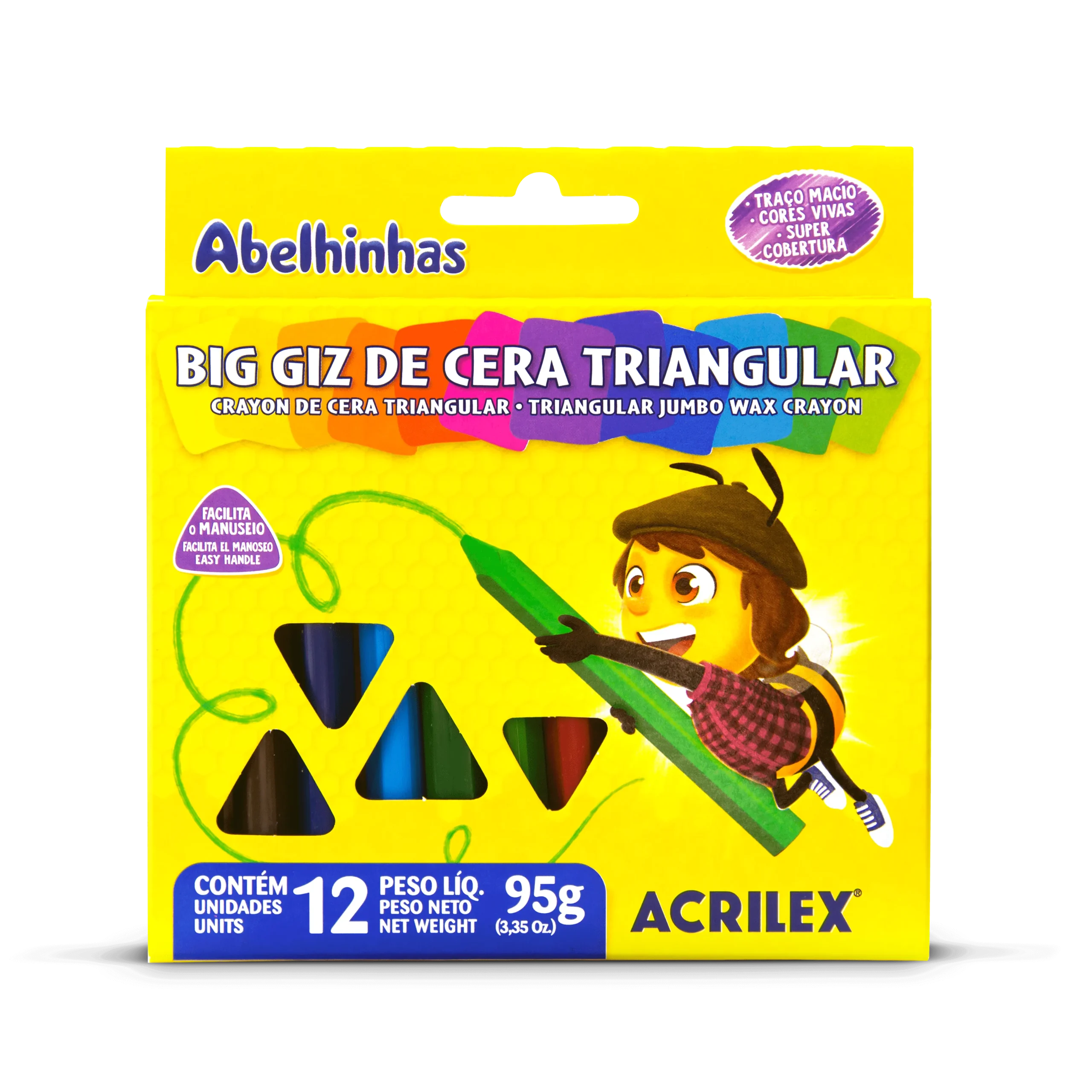 O Giz Big Triangular da Acrilex foi desenvolvido especialmente para auxiliar em qualquer traço que seu pequeno(a) possa fazer. Além de o Giz ter o corpo triangular facilitando o apoio dos dedos. Isso não é perfeito né?