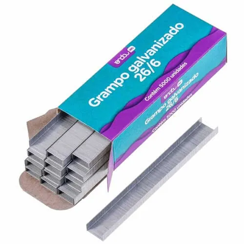 – Grampo 26/6. – Galvanizado. – Com 5.000 grampos.
