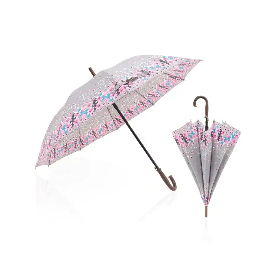 Guarda-Chuva Bengala Automático De Ferro Estampado Cinza 120 cm X 82 cm – Facinato