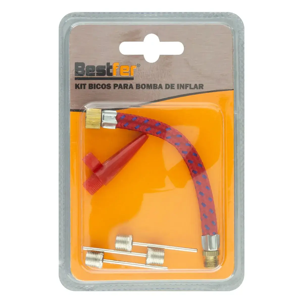 Contando com três bicos de metal, um bico plástico e uma mangueira, o jogo de bicos Bestfer lhe oferece maior praticidade na hora de inflar pneus de bicicleta, bolas, colchões infláveis, entre outros.