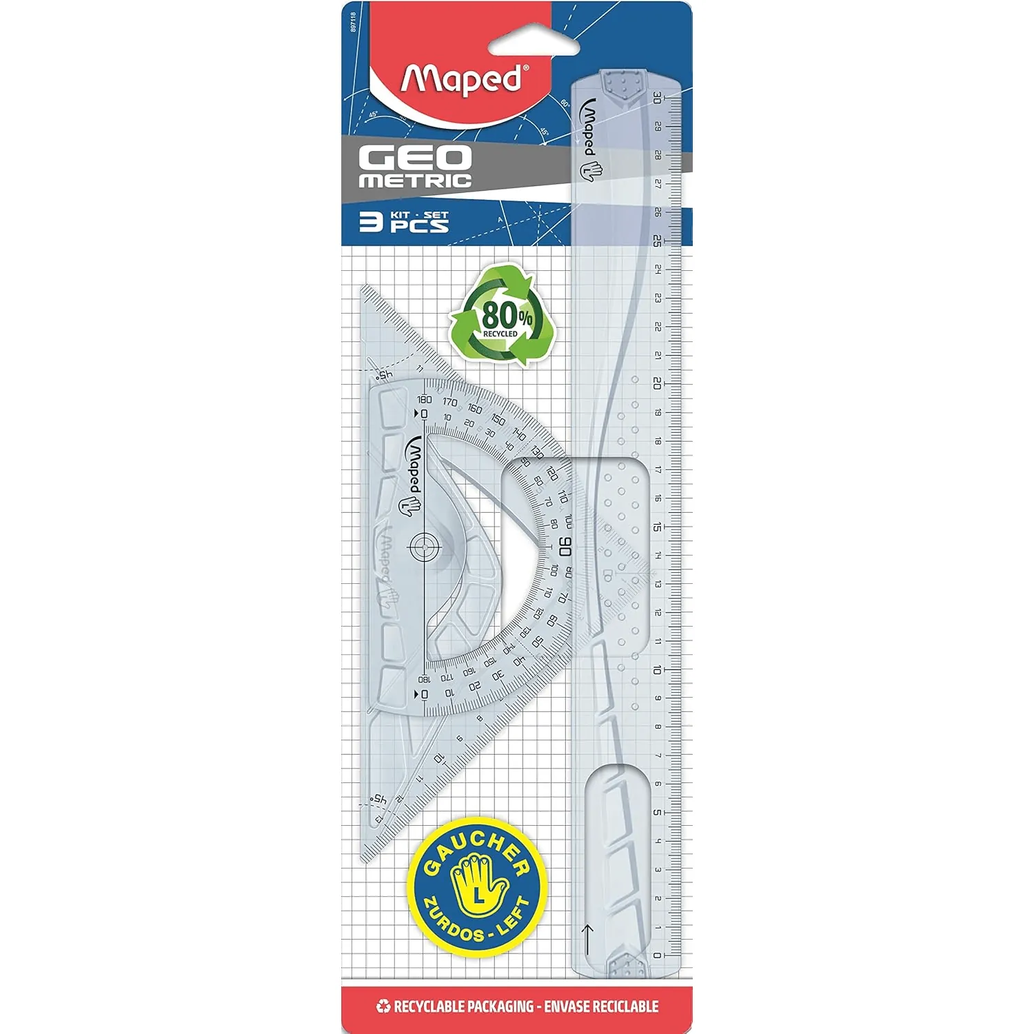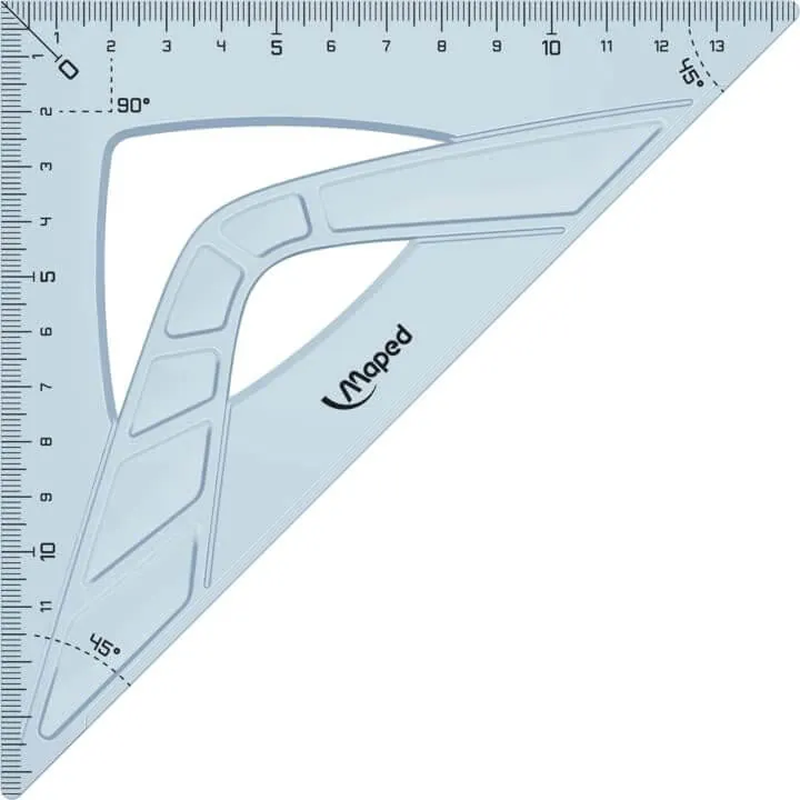 – 1 régua de 30 cm. – 1 esquadro de 45° graus. – 1 esquadro de 60° graus . – 1 transferidor de 180°.