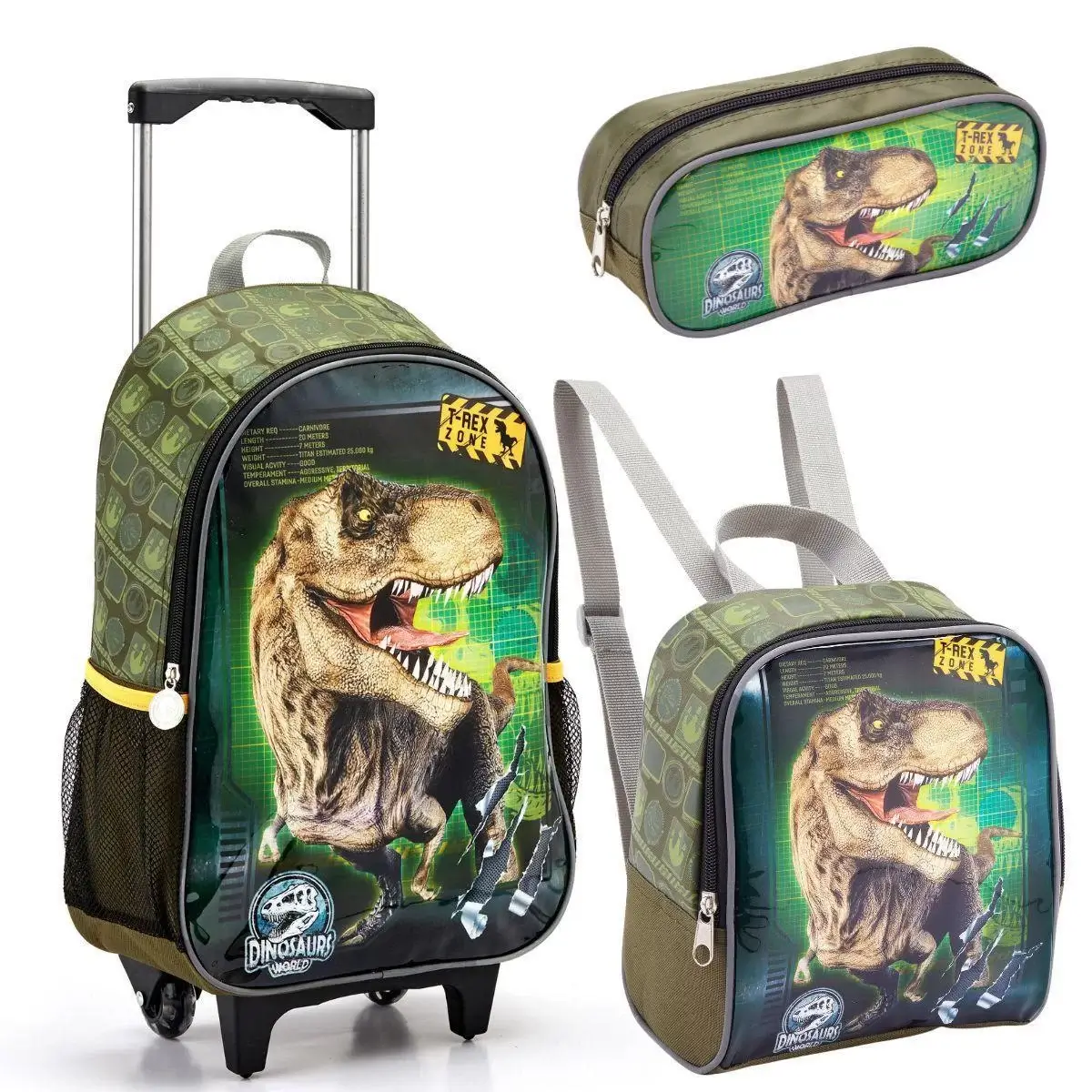 KIT ESCOLAR MASCULINO COMPOSTO POR: MOCHILA DE RODINHA 16″ FEITA COM 70% POLIÉSTER E 30% PVC. POSSUI CARRINHO EMBUTIDO COM BOTÃO DE TRAVA, BOLSOS LATERAIS PORTA GARRAFA, PUXADORES PERSONALIZADOS, IDENTIFICADOR NO VERSO, RODAS DE SILICONE E APOIO FRONTAL. MEDIDAS: 29X41X12,5CM. LANCHEIRA TÉRMICA INFANTIL 70% POLIÉSTER E 30% PVC. POSSUI IDENTIFICADOR NO VERSO, ELÁSTICO INTERNO PARA FIXAÇÃO DA GARRAFA, ALÇA E ELÁSTICO NAS COSTAS PARA FIXAÇÃO NO CARRINHO 20X22X11CM. ESTOJO COM 2 DIVISÓRIAS. DIMENSÕES PARA O ENVIO DO PRODUTO.
