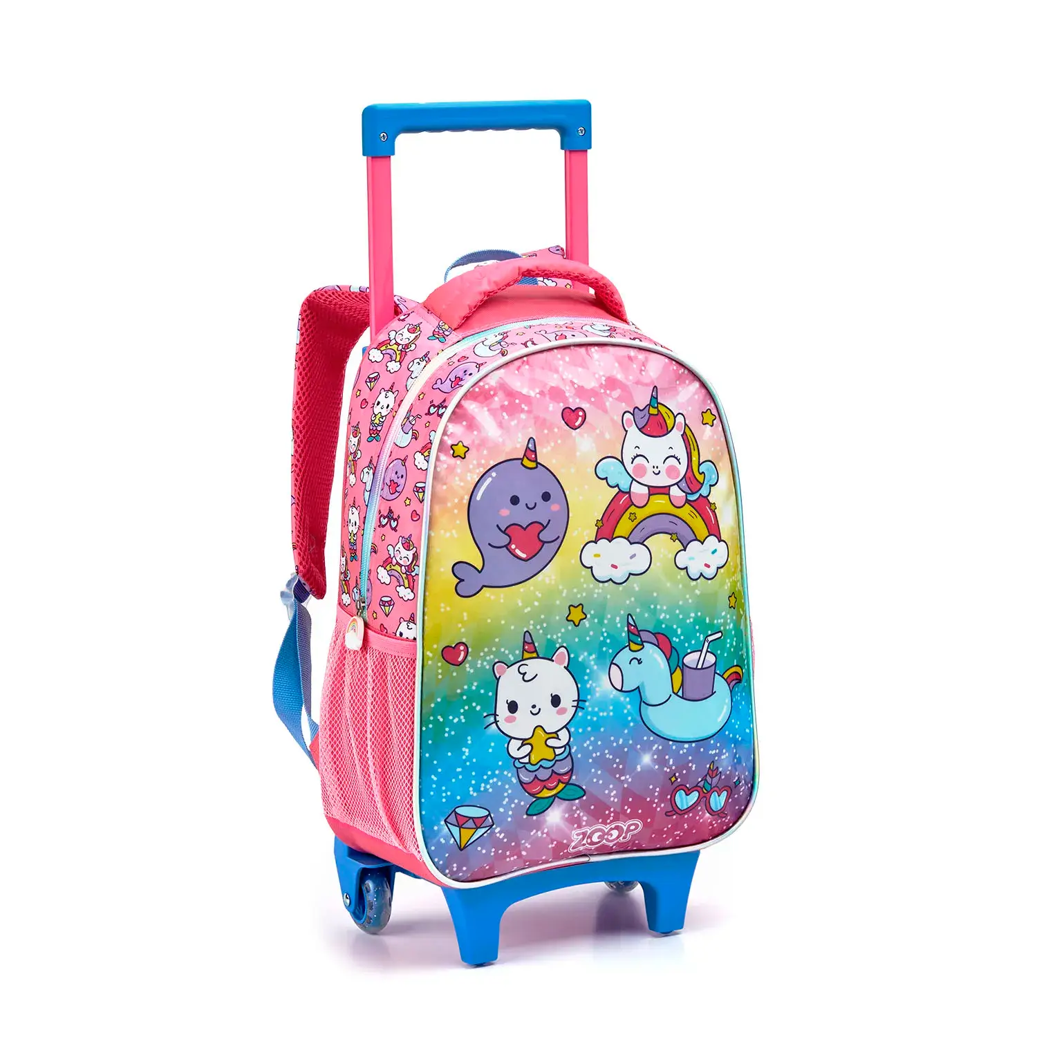 KIT ESCOLAR FEMININO COMPOSTO POR: MOCHILA DE RODINHA 16″ FEITA COM 70% POLIÉSTER E 30% PVC. POSSUI CARRINHO EMBUTIDO COM BOTÃO DE TRAVA, BOLSOS LATERAIS PORTA GARRAFA, PUXADORES PERSONALIZADOS, IDENTIFICADOR NO VERSO, RODAS DE SILICONE E APOIO FRONTAL. MEDIDAS: 29X41X12,5CM. LANCHEIRA TÉRMICA INFANTIL 70% POLIÉSTER E 30% PVC. POSSUI IDENTIFICADOR NO VERSO, ELÁSTICO INTERNO PARA FIXAÇÃO DA GARRAFA, ALÇA E ELÁSTICO NAS COSTAS PARA FIXAÇÃO NO CARRINHO 20X22X11CM. ESTOJO COM 2 DIVISÓRIAS. DIMENSÕES PARA O ENVIO DO PRODUTO.