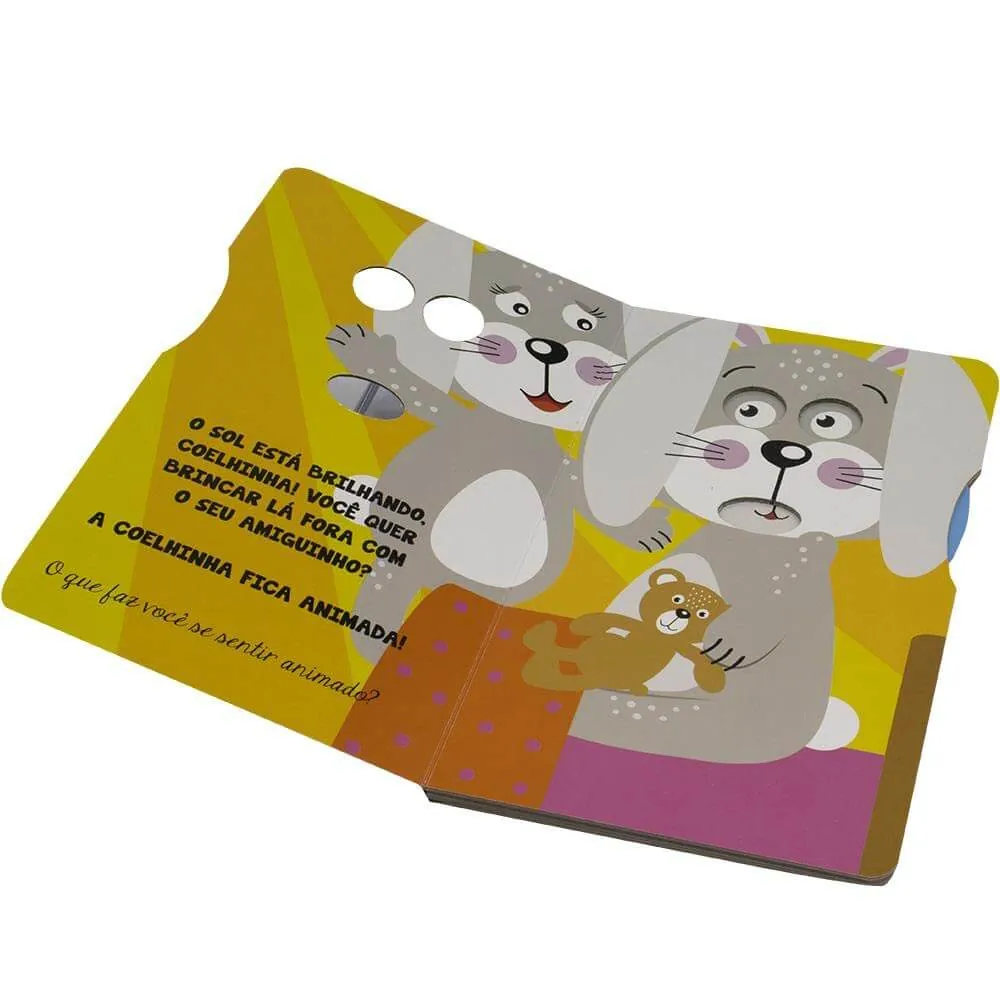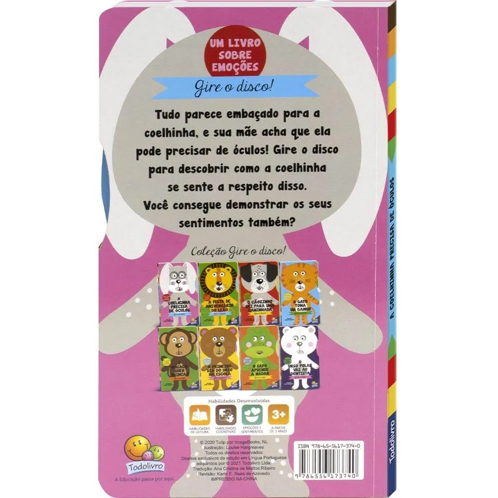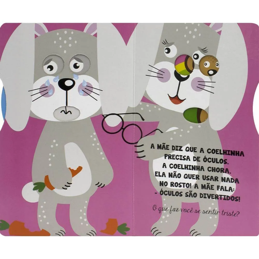 Tudo parece embaçado para a coelinha, e sua mãe acha que ela pode precisar de óculos! Gire o disco para descobrir como a coelinha se sente a respeito disso. Você consegue demonstrar os seus sentimentos também?