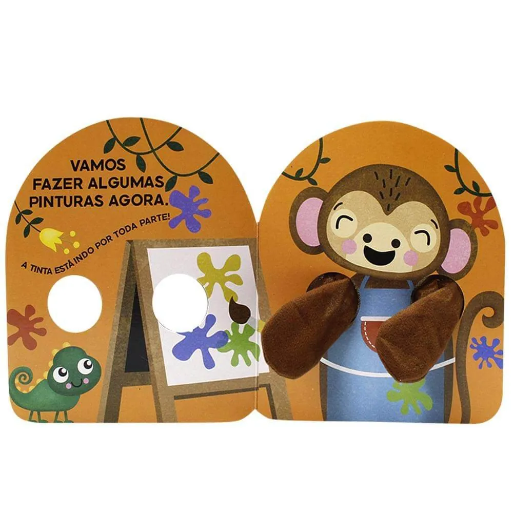 Os braços macios do macaco são incríveis para grandes abraços e carícias. Brinque com a criança enquanto você lê este livro dedoche interativo e afetuoso