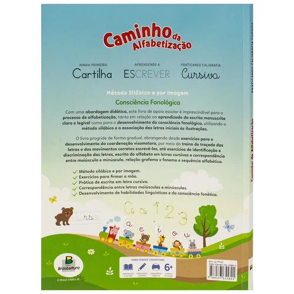 Com uma abordagem didática, este livro de apoio escolar é imprescindível para o processo de alfabetização, tanto em relação ao aprendizado da escrita manuscrita clara e legível como para o desenvolvimento da conciência fonológica, utilizando o método silábico e a associação das letras iniciais às ilustrações. O livro progride de forma gradual, abrangendo desde exercícios para o desenvolvimento da coordenação visomotora, por meio do treino do traçado das letras e dos movimentos corretos escrevê-las, até exercícios de identificação e discriminação das letras, escrita do alfabeto em letras cursivas e correspondências entre maiúscula e minúscula, relação grafema x fonema e sequência alfabética.