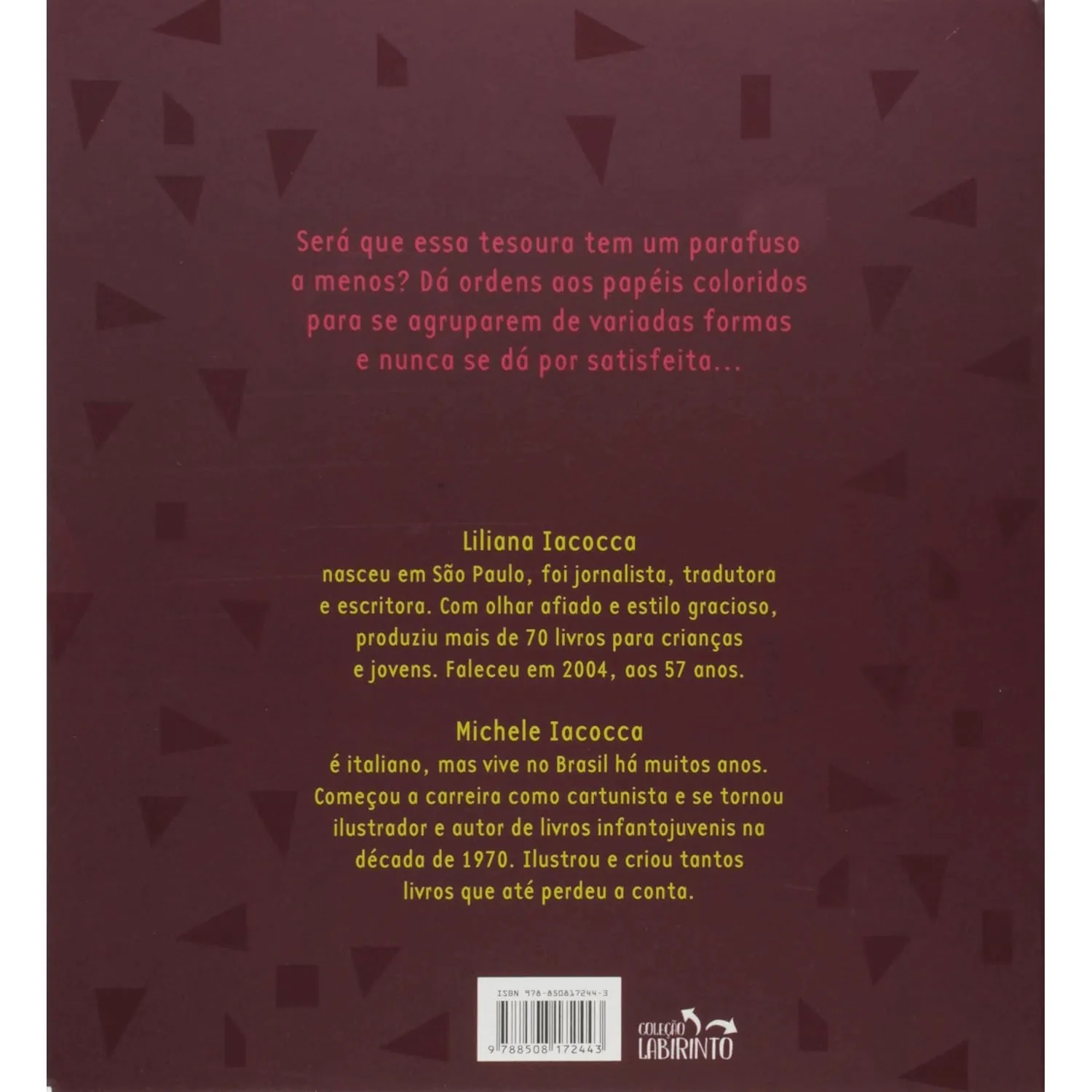 Uma tesoura mandona encontra vários papeizinhos coloridos picados e fica horrorizada com a bagunça. Bem que ela tenta colocar ordem ali, mas não fica satisfeita com a arrumação.