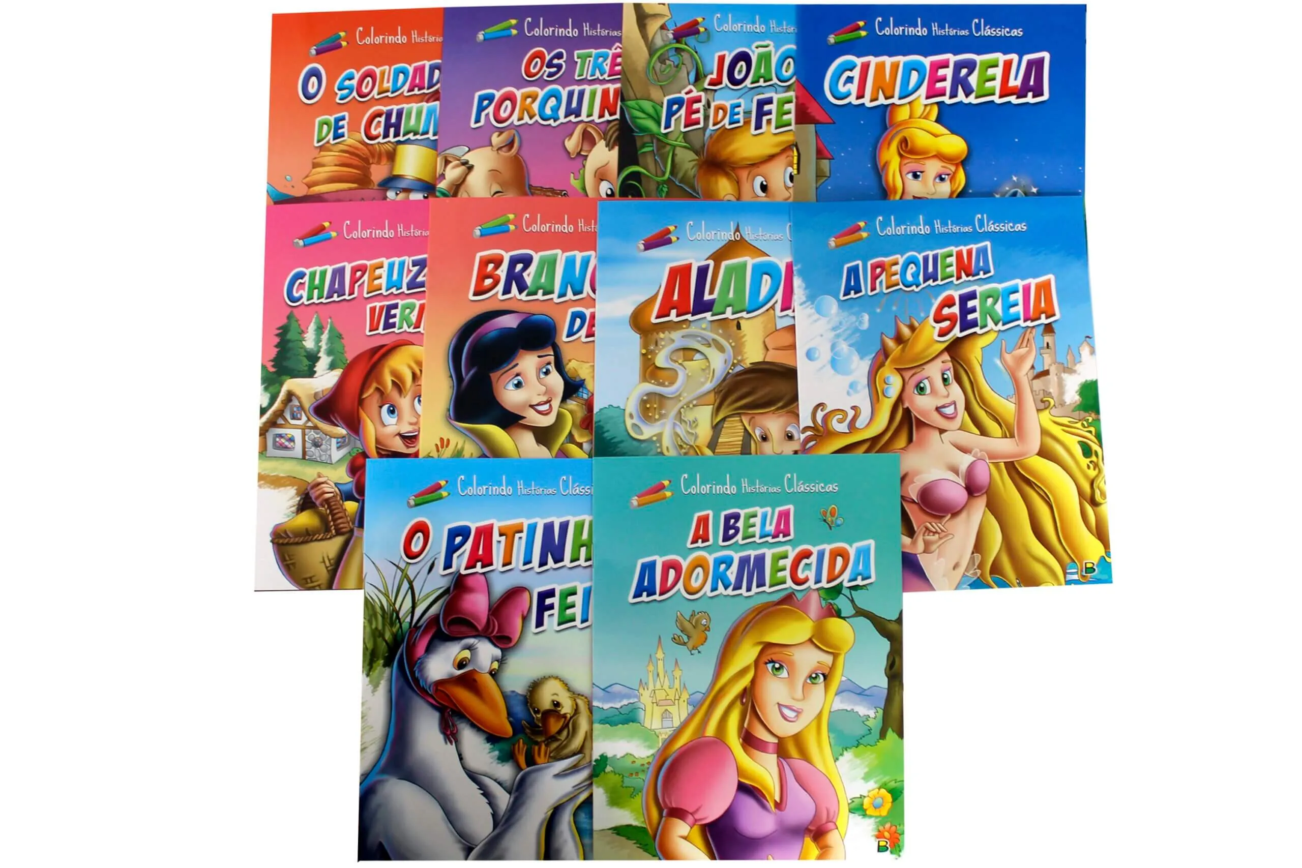 A arte de colorir é uma divertida atividade com efeitos positivos para o desenvolvimento psicomotor da criança. Os desenhos coloridos conduzem-na a distinguir cores e formas, aprimorando a coordenação visual motora e a percepção. Os contos de fada estimulam sua criatividade, envolvendo-a totalmente com o cenário. Cada sucesso produz alegria e novas conquistas, promovendo, em forma de brincadeira, importantes capacidades e habilidades. Títulos- O Patinho Feio, O Soldadinho de Chumbo, João e o Pé de Feijão, A Pequena Sereia, Aladim, Os Três Porquinhos, A Bela Adormecida, Branca de Neve, Chapeuzinho Vermelho, Cinderela. Gênero: Literatura Editora: TODO LIVRO Autor: Brasileitura